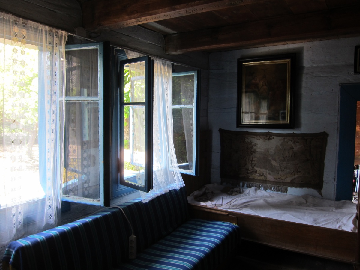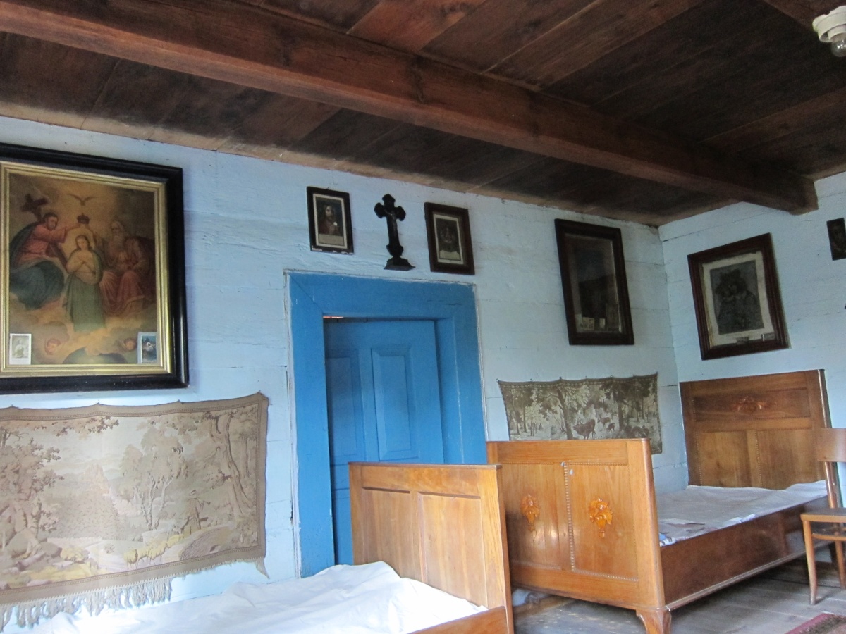 Parter domu oryginalne belki oraz powała z 1879 roku , na podłogach położono na nowo oryginalne stare deski.