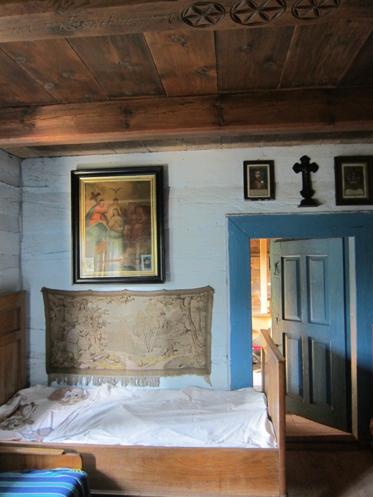Parter orginalnie zachowana chlopska izba i kuchnia, rozbudowane piętro w poddaszu oraz łazienka w dawnej komorze .