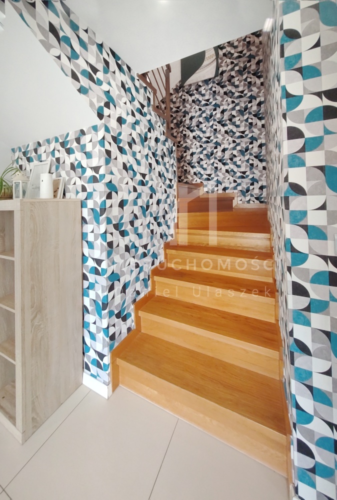 W domu zamontowano solidne metalowe drzwi wejściowe oraz duże okna PCV 2-szybowe, zapewniające mnóstwo naturalnego światła słonecznego wpadającego do wnętrza. Podłogi w kuchni i łazienkach wykonane zostały z trwałego gresu, zaś w salonie i na poddaszu z pięknej deski, która doskonale oddaje ciepło z ogrzewania podłogowego i jednocześnie podkreśla wyjątkową estetykę wykończenia. Całe wnętrze urządzone jest w przytulnym i nowoczesnym stylu.