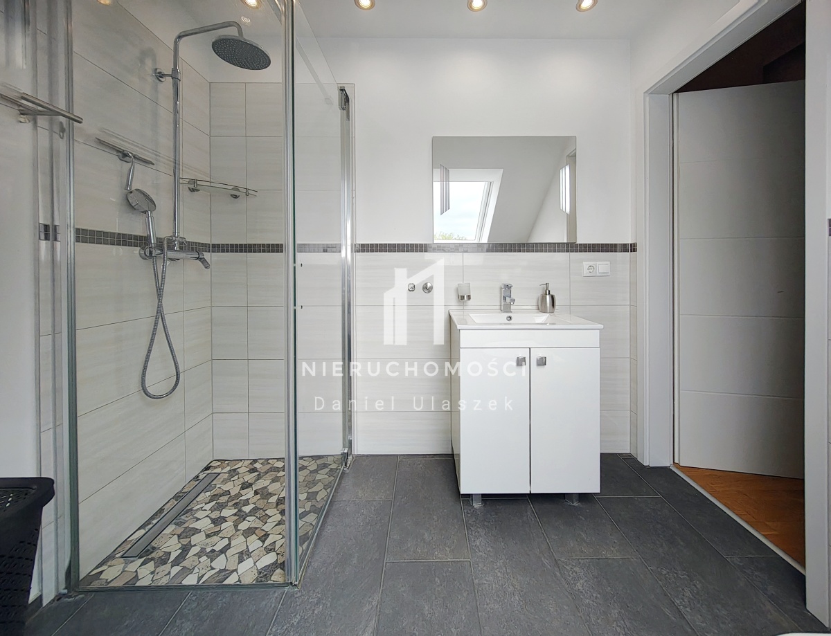 - łazienkę z prysznicem i miejscem na pralkę,
