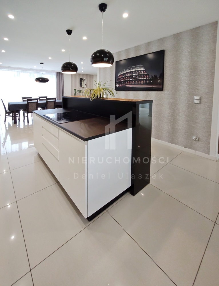 W cenie domu pozostaje piękna kuchnia w zabudowie wraz z kompletnym osprzętem AGD.