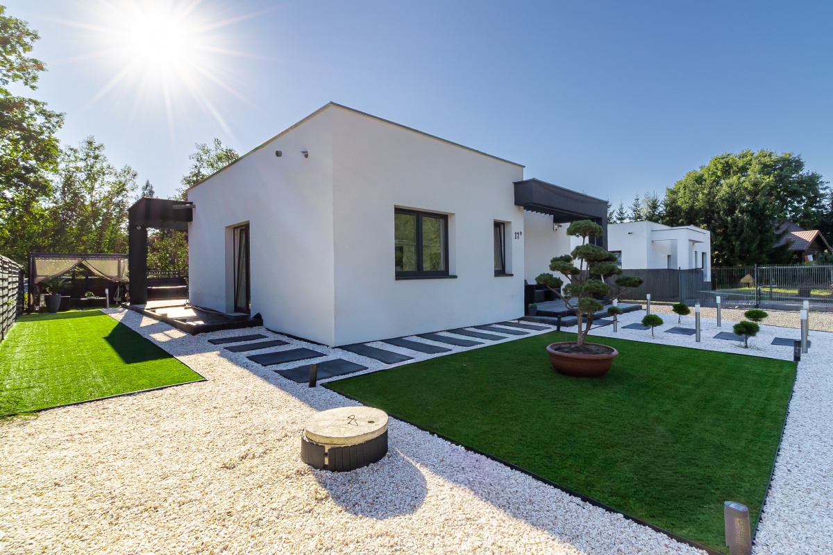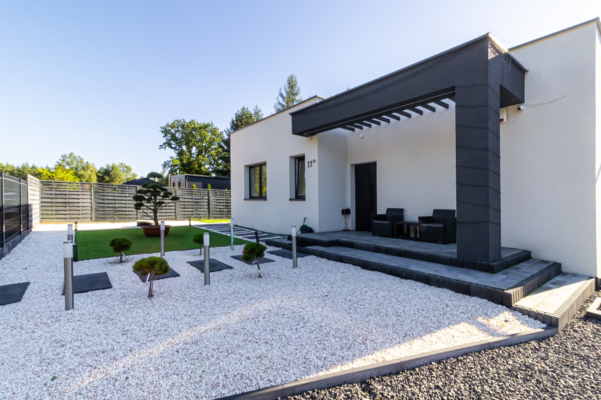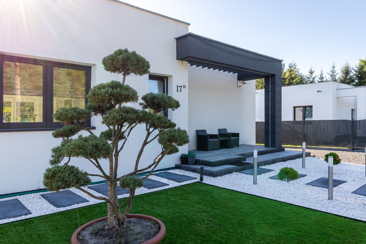 Za drzwiami czeka starannie zaprojektowana przestrzeń prywatności i relaksu oraz zadbany ogród z niepowtarzalną roślinnością
