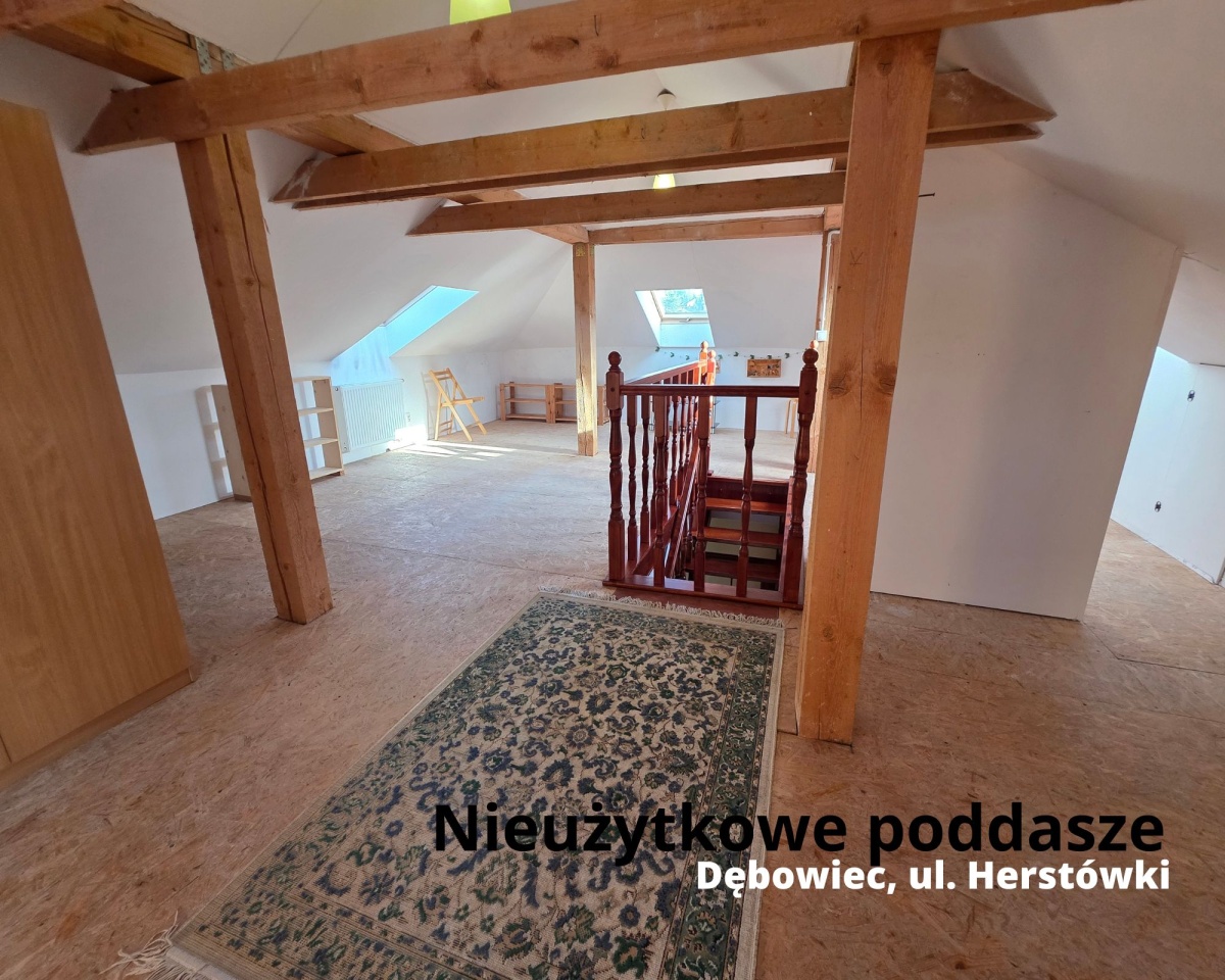 Dom parterowy z poddaszem (obecnie nieużytkowym) o powierzchni 129 m², z przestronnym salonem, trzema sypialniami i ogrodem zimowym (13 m²).