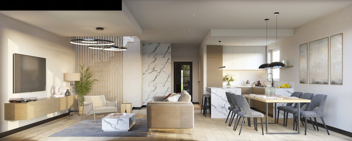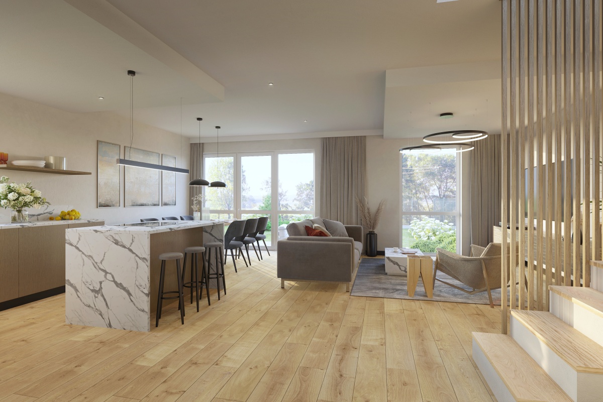 przestrzeń dzienna i użytkowa to przestronny salon z aneksem kuchennym i jadalnią (35,88 m²)