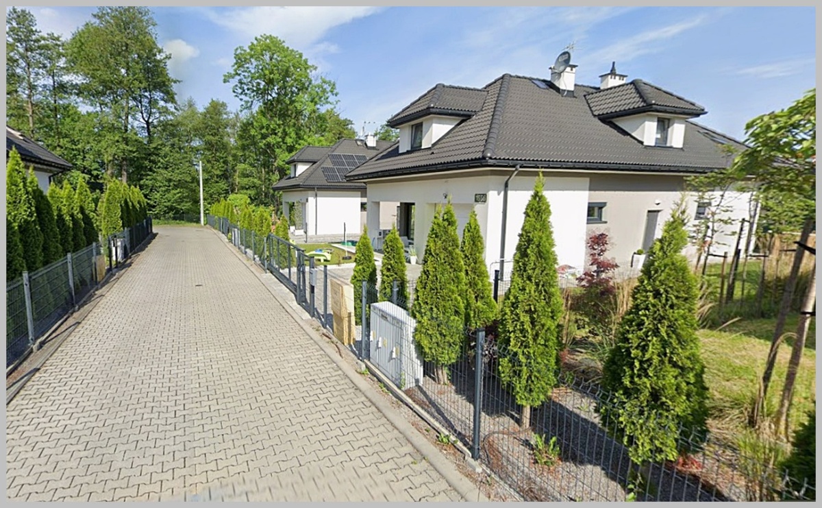 Nieruchomość ogrodzona ( ogrodzenie panelowe), podjazd i dojście do budynku utwardzone kostką brukową. Na podjeździe możliwość zaparkowania dodatkowo jednego samochodu przed garażem. Brama wjazdowa zamykana na pilota.