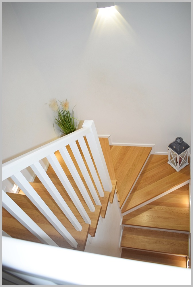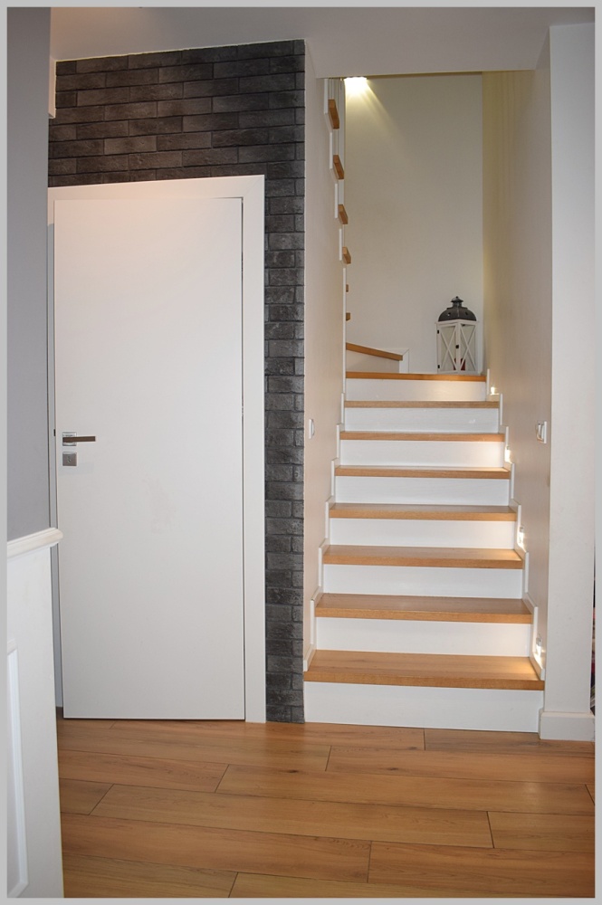 Schody wewnętrzne żelbetowe- stopnice drewniane.