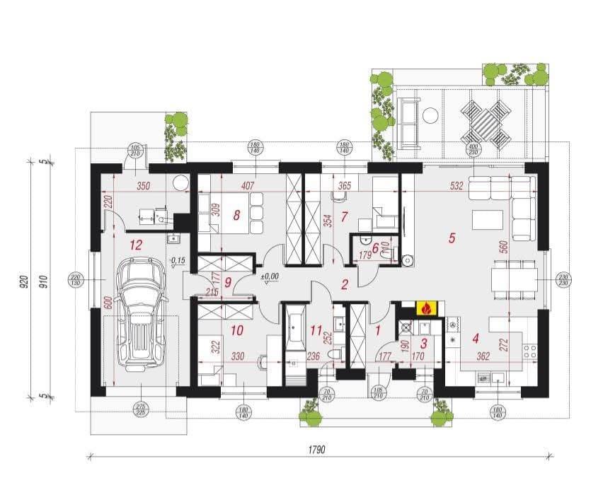 Dom oferuje 99,12 m² powierzchni mieszkalnej, a dodatkowo garaż o powierzchni 20,62 m² oraz kotłownię 7,06 m². Przemyślany i funkcjonalny układ pomieszczeń zapewnia wysoki komfort użytkowania – przestronna i jasna strefa dzienna sprzyja wspólnemu spędzaniu czasu z rodziną i przyjaciółmi, natomiast wydzielona część prywatna gwarantuje ciszę, intymność i wygodę domowników. To dom, który daje poczucie przestrzeni i swobody, a jednocześnie pozostaje praktyczny i łatwy w codziennym użytkowaniu.