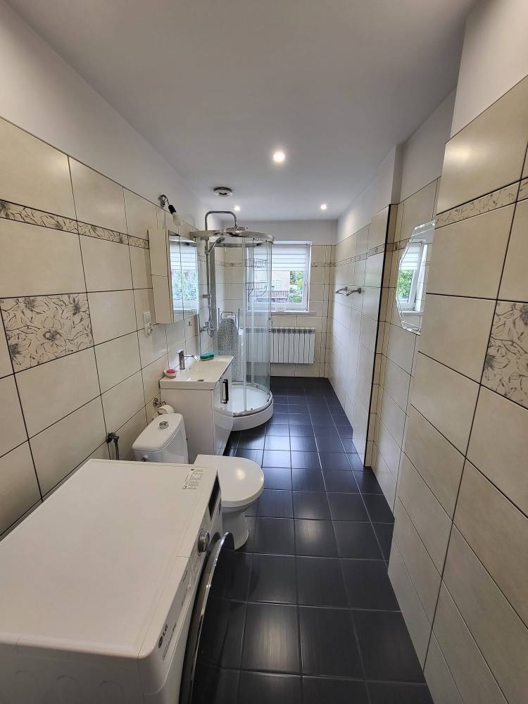 Na dole – pokój, kuchnia, łazienka i dodatkowe WC.