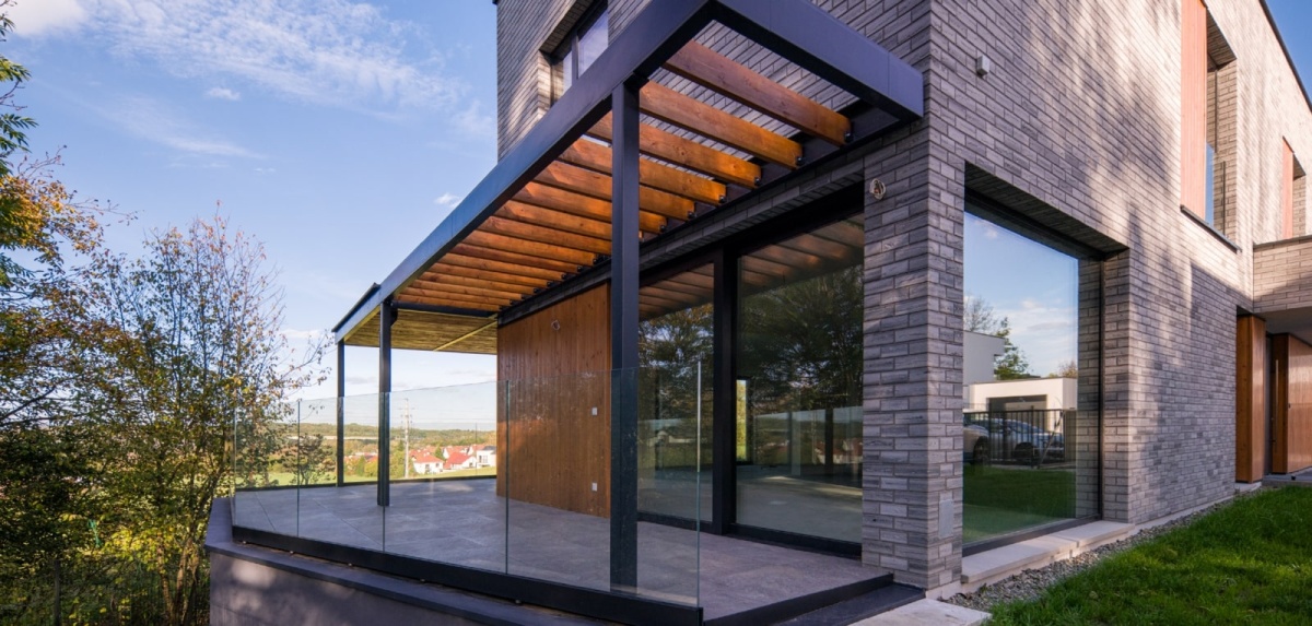 Wysokie aluminiowe okna, które naturalnie doświetlają wnętrza,