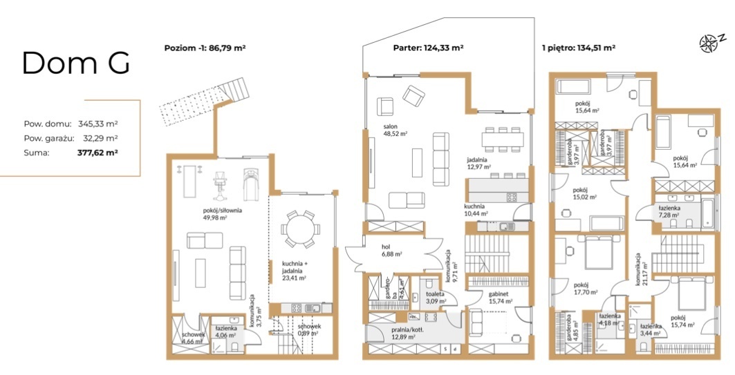 Dom zaprojektowano tak, aby każdy poziom był funkcjonalny, wygodny i gotowy do indywidualnej aranżacji.