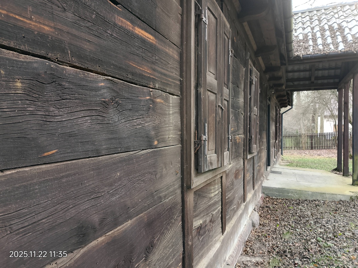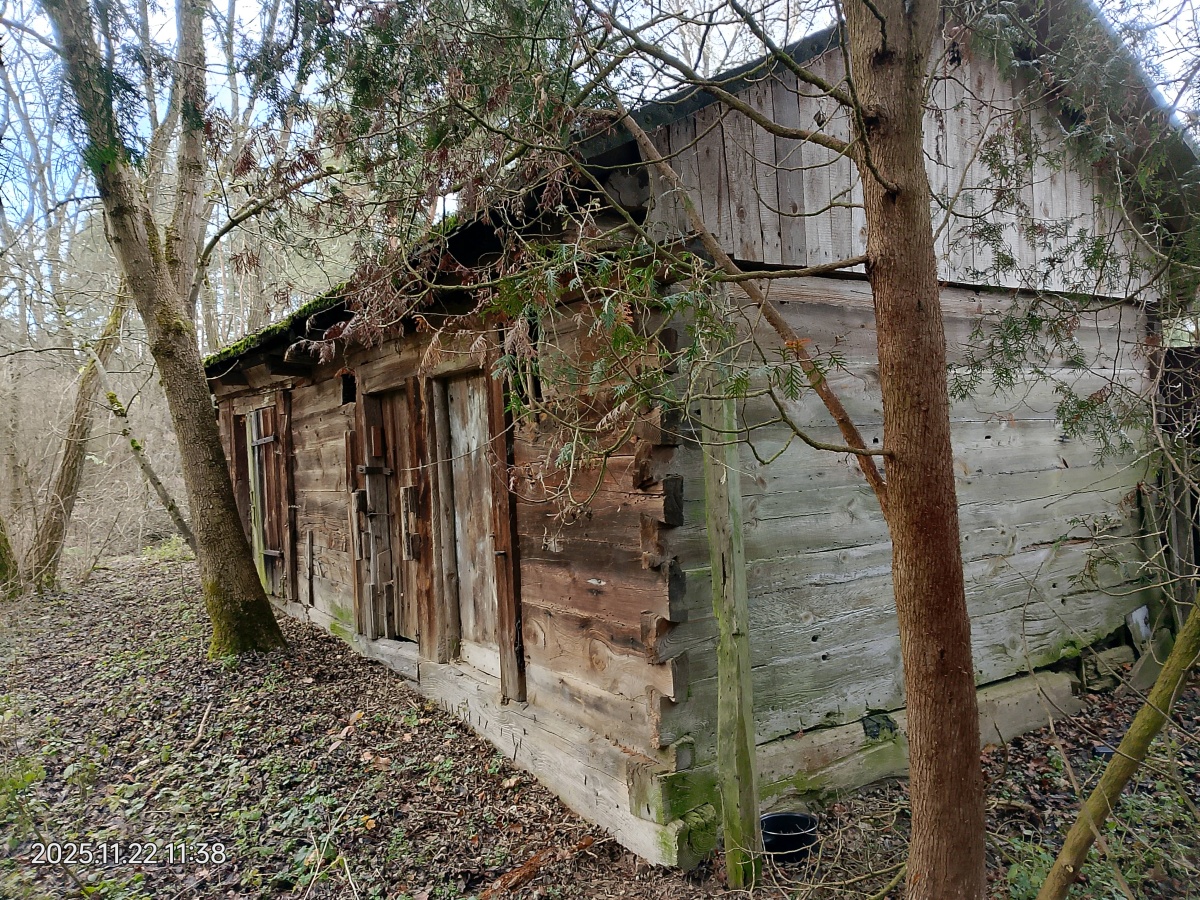 Na działce również wiekowa niewielka obórka z niestety rozpadającym się dachem .