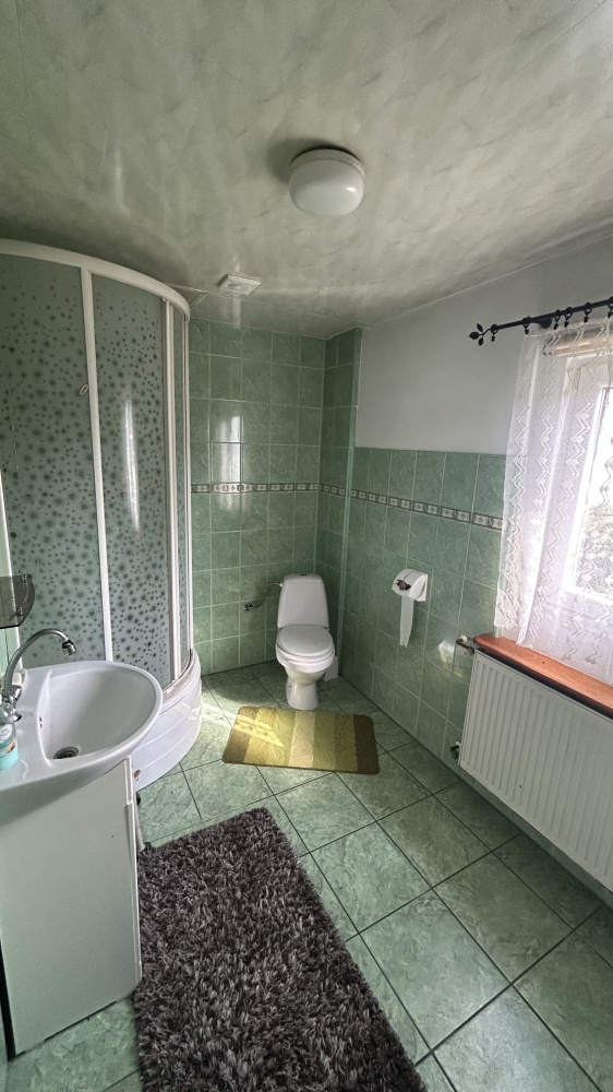 W domu znajdują się dwa piece kaflowe i jeden na drewno.