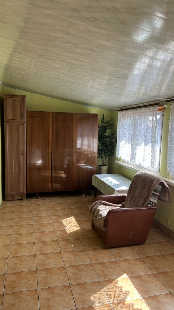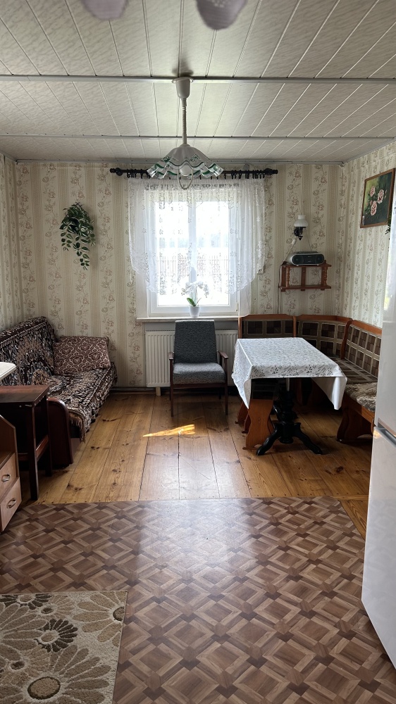 Dom (90m2) na działce o powierzchni 2779m2. Dom składa się z ganka, przedsionka, 3 izb, oraz łazienki. Przed domem znajduję się altana oraz studnia. Jest pięknie zaaranżowany ogród warzywny oraz kwiatowy z drzewkami owocowymi.