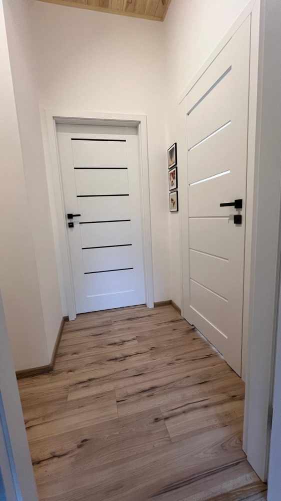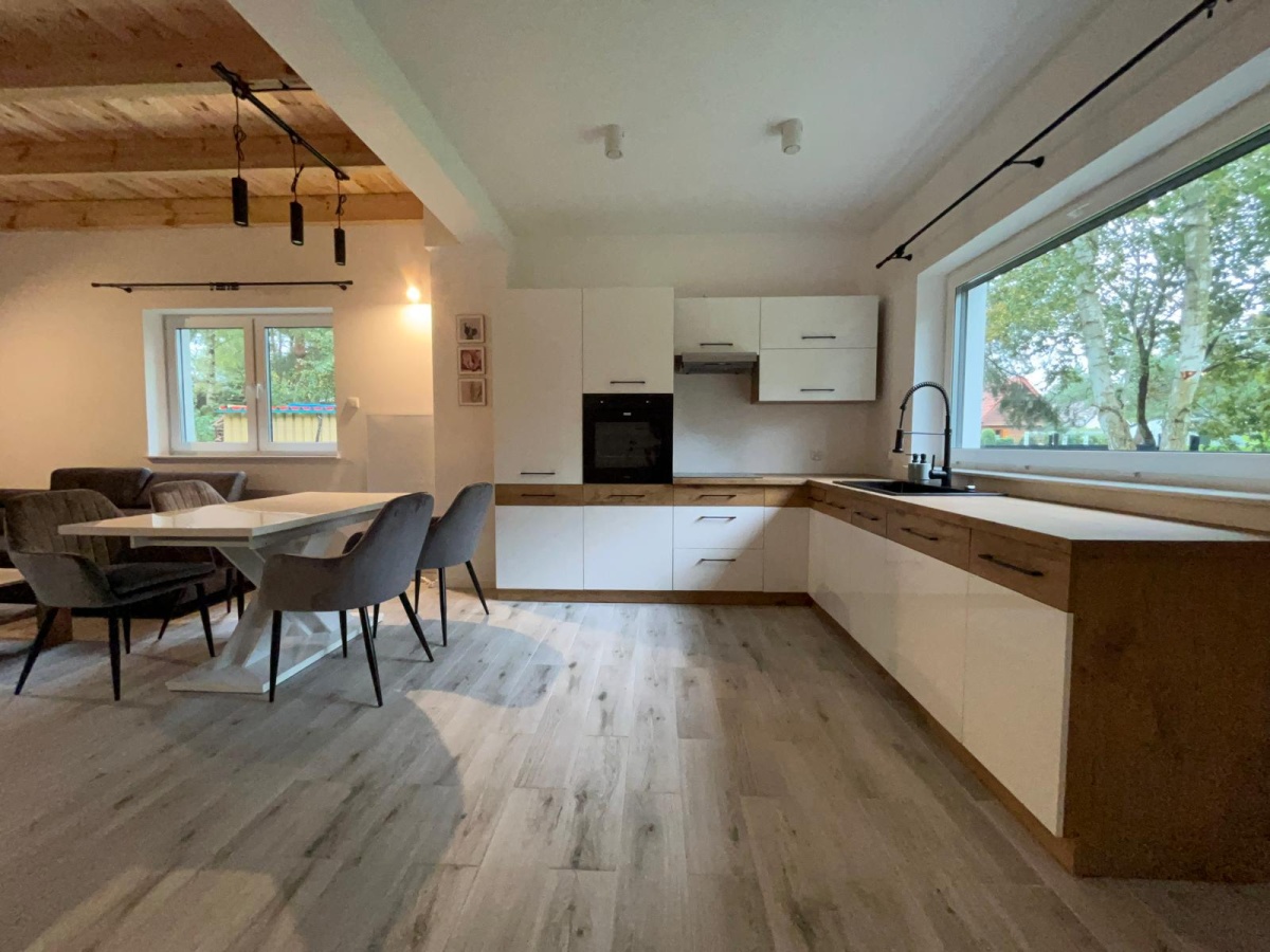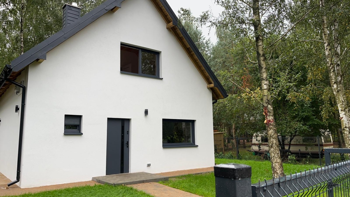 Dom w stanie pod klucz , gotowy do zamieszkania, wybudowany z bloczków gazobeton 24 cm, dach pokryty blachodachówką. Na parterze domu znajduje się strefa dzienna, kuchnia z pełnym wyposażeniem, jadalnia i pokój dzienny. Dom jest wyposażony w panele fotowoltaiczne o mocy 5 kW, które zaspokajają potrzeby energetyczne, co gwarantuje niskie koszty utrzymania. Ogrzewanie na podczerwień zapewni komfort w chłodniejsze dni, a w upalne lato o przyjemną temperaturę zadba klimatyzacja. Dodatkowo, w łazience na parterze zastosowano ogrzewanie podłogowe dla jeszcze większej wygody.