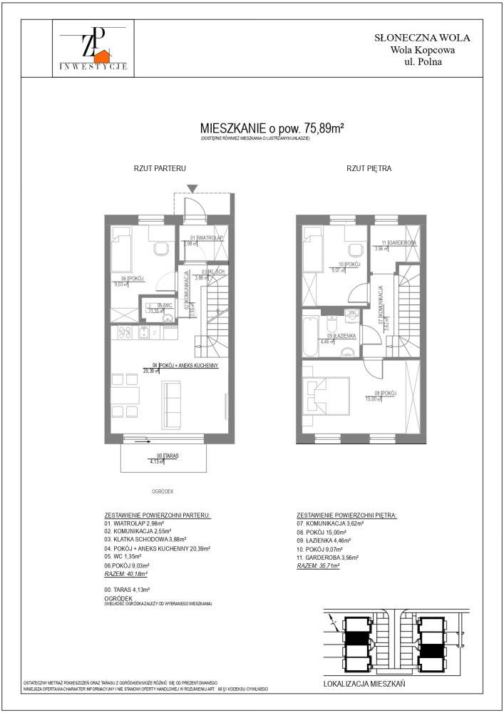 WOLA KOPCOWA - 2 poziomowe mieszkania z ogródkami