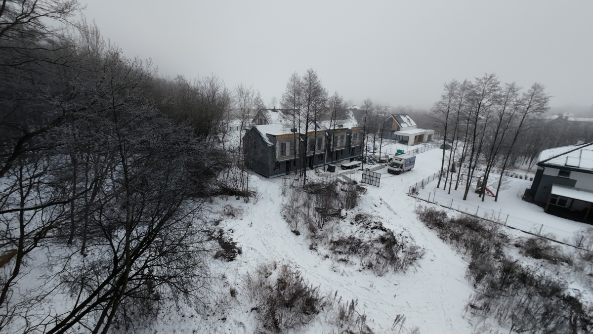 Inwestycja położona jest na końcu spokojnej, zielonej uliczki wśród drzew – idealne miejsce dla rodzin i osób szukających wytchnienia.