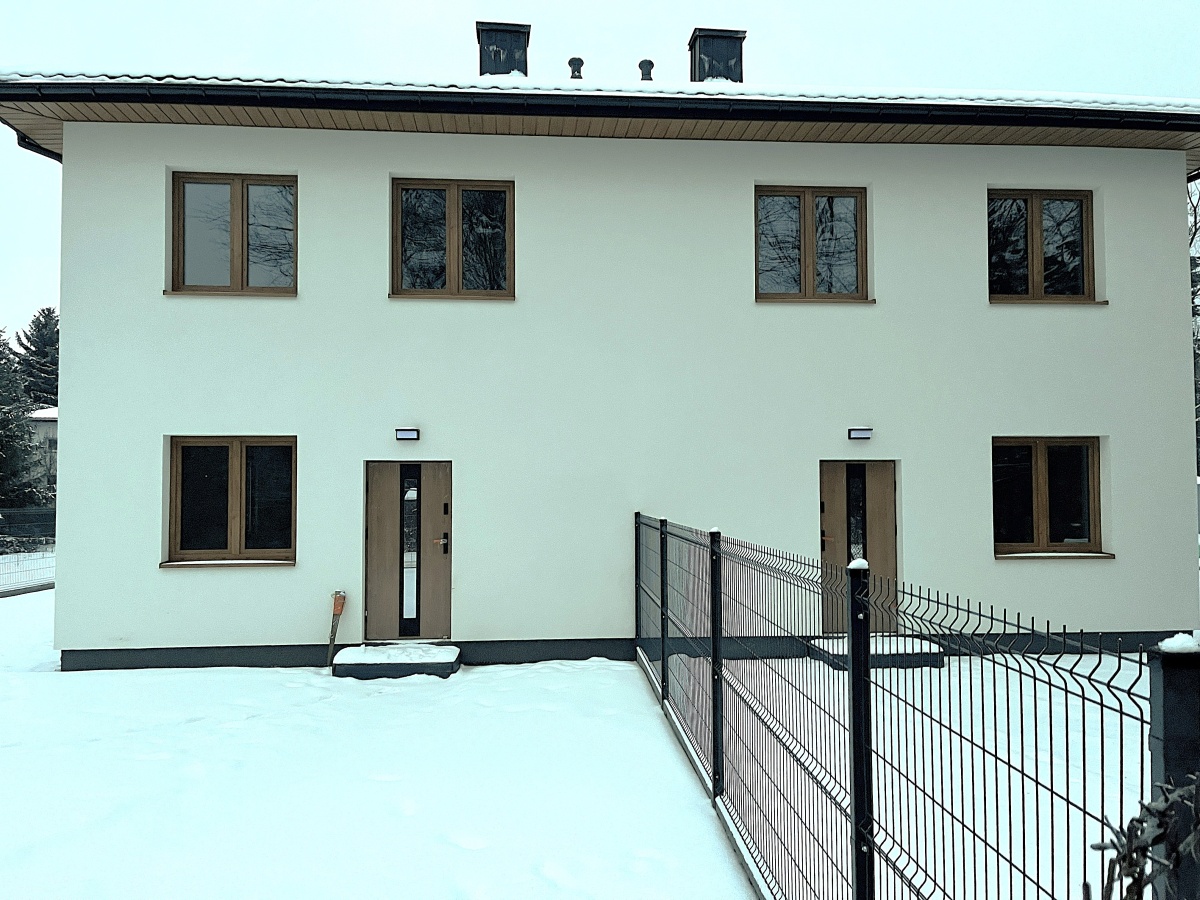 Nowy bliźniak w stanie deweloperskim położony w Milanówku Inwestycja zakończona, ogrzewanie podłogowe wygrzane, wszystkie prace zakończone, dom zgłoszony do użytkowania, pełna gotowa dokumentacja do sprzedaży. Jest to jeden bliźniak w otoczeniu zabudowy jednorodzinnej, a nie duże osiedle ze wspólnymi wjazdami. Kameralna inwestycja, każda połówka ma oddzielny wjazd bezpośrednio z drogi publicznej. Cicha i zielona okolica. Inwestycja zrealizowana, zakończenie prac styczeń 2026. Dom wzniesiony z wysokiej jakości materiałów z markowymi oknami i drzwiami. Ogrzewanie podłogowe wodne w całym budynku. W połączeniu z pompą ciepła tworzy najtańsze źródło ciepła na chwilę obecną. Sam mieszkam w bliźniaku z takim źródłem ciepła i chętnie przedstawię wszelkie rachunki do wglądu. Na parterze salon z aneksem kuchennym, łazienka, wiatrołap i hol. Piętro to 3 sypialnie, korytarz i łazienka. Cena brutto do której należy doliczyć koszt montażu pompy ciepła od 24 tys. do 30 tys. zł z gwarancją ceny. Pompę mogę założyć (cała instalacja jest już przygotowana), natomiast przy samodzielnym montażu pompy można obniżyć przez dotacje podane wyżej koszty. Droga gminna oświetlona, utwardzona z kompletem mediów: prąd, woda, gaz, światłowód, kanalizacja ( kanalizacja jest już w drodze i w planach do przyłączenia przez krótki przejściowy okres szambo). W pobliżu przystanek komunikacji miejskiej. Szybki dojazd do A2 (3-4 minuty z pominięciem korków).