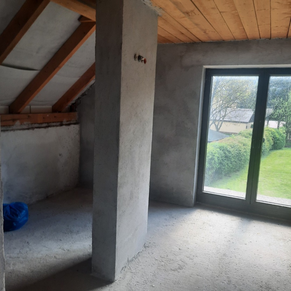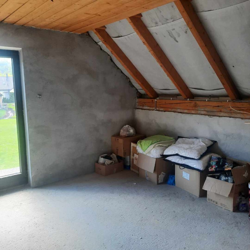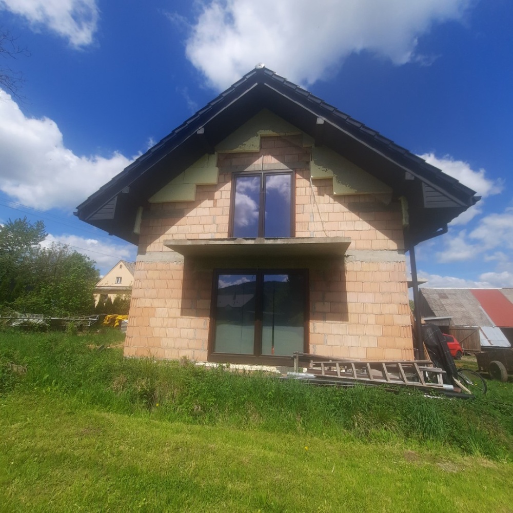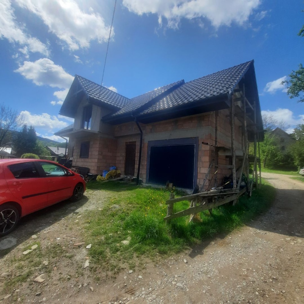 Sprzedam dom 150 m/kw na działce 8 ar w Porębie koło Myślenic.Bardzo spokojna okolica,dom w drugiej linii zabudowy.Stan domu -do wykończenia.Są wylewki , tynki,stolarka.Parter-przedpokój,kuchnia,pokój dzienny,hol,łazienka,pom. gospodarcze,garaż,spiżarnia,pow.lączna 80,6 m2.Poddasze-hol,łazienka,4 pokoje,garderoba o pow łącznej użutkowej 58,7 m2.Powieszchnia całkowita 149,8 m2,Cena 500000.Mogę pomóc w uzyskaniu kredytu.