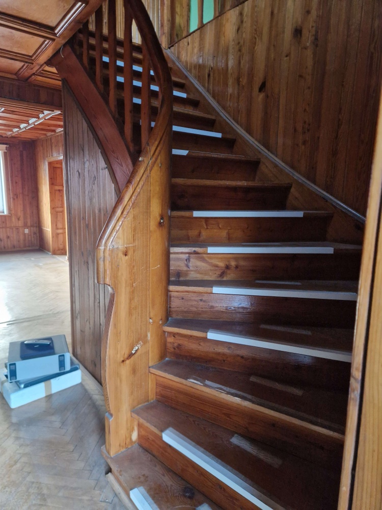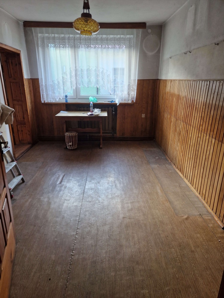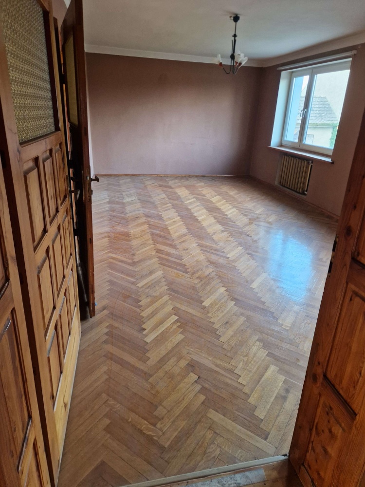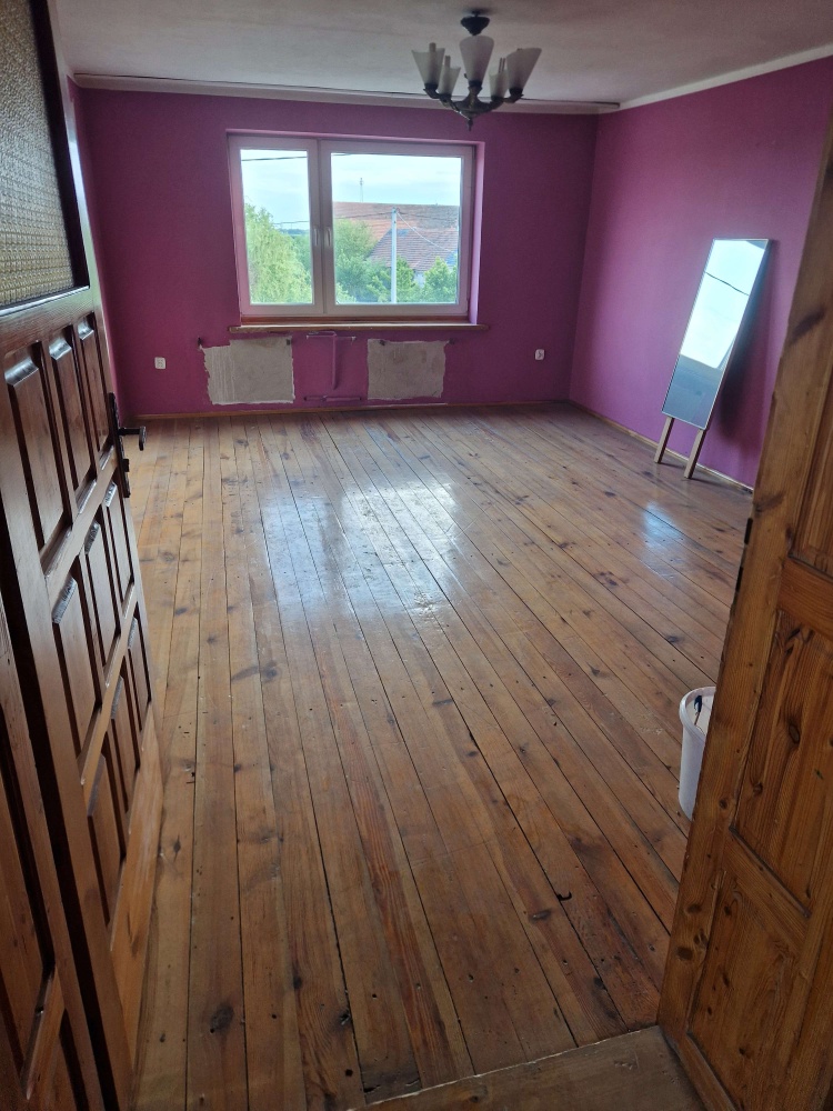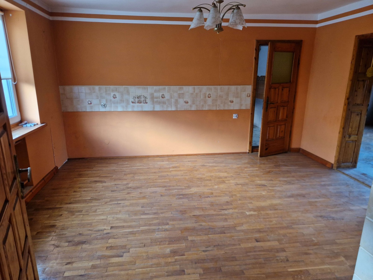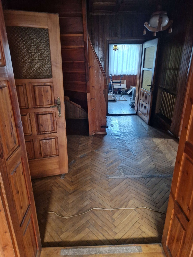 - Parter: toaleta, pomieszczenie gospodarcze, 2 pokoje, kuchnia, łazienka, weranda