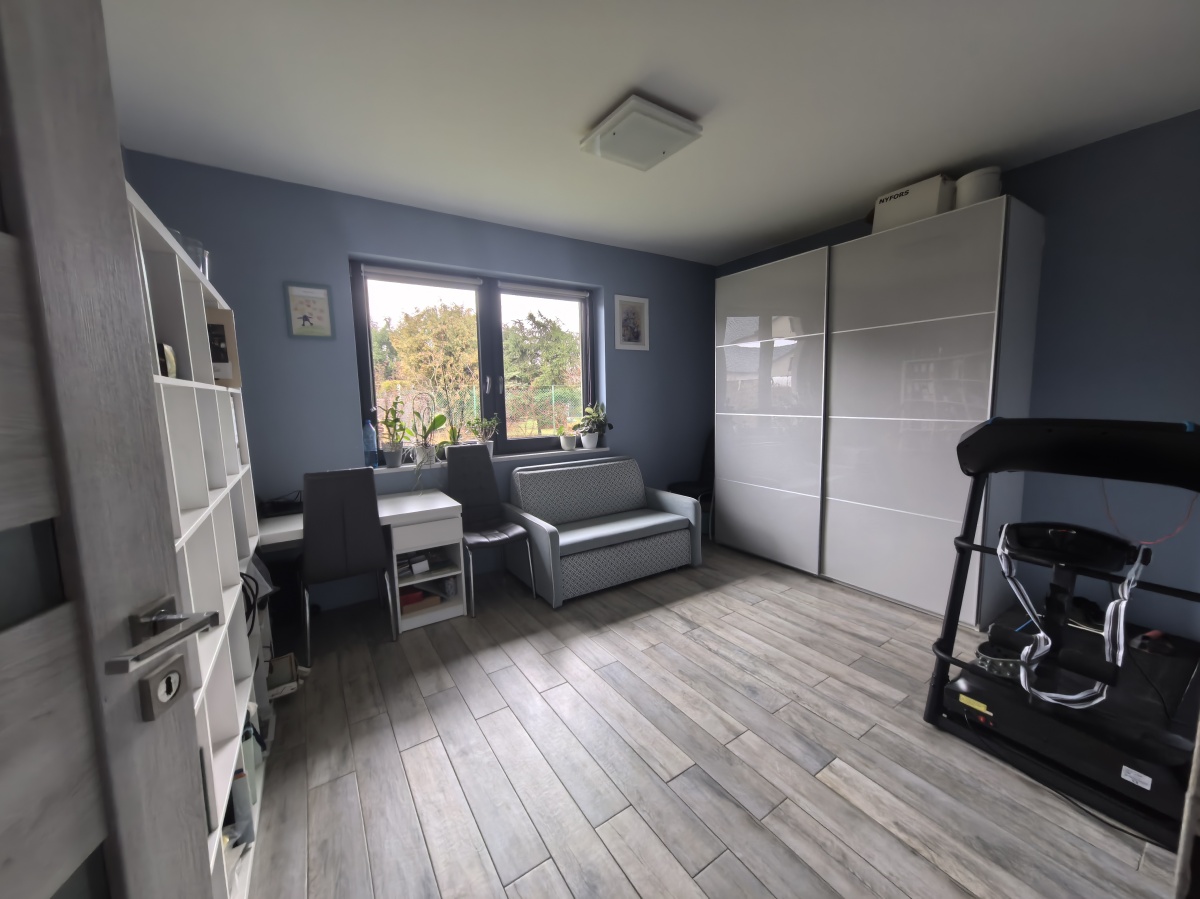 Piętro to prywatna strefa domowników, oferująca trzy duże, komfortowe sypialnie i przestronną łazienkę z wanną i prysznicem oraz dwiema umywalkami. Każda z sypialni posiada własną garderobę, co jest ogromnym atutem i zapewnia doskonałą organizację. W łazience na piętrze również jest ogrzewanie podłogowe, a w pozostałych pomieszczeniach kaloryfery. Na podłodze po całości panele.
