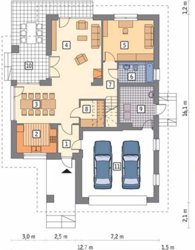 Dwu-stanowiskowy garaż w bryle: wygodne parkowanie i dodatkowe miejsce do przechowywania.
