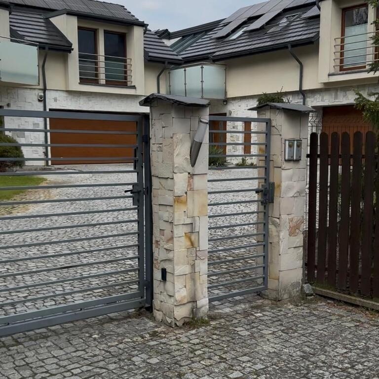 Elewacja domu obłożona kamieniem co robi niesamowite wrażenie.