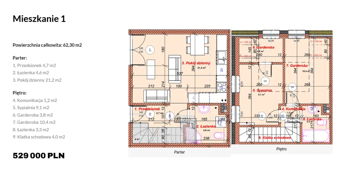• Lokal 1 – 62,30 m² | Cena: 529 000 zł