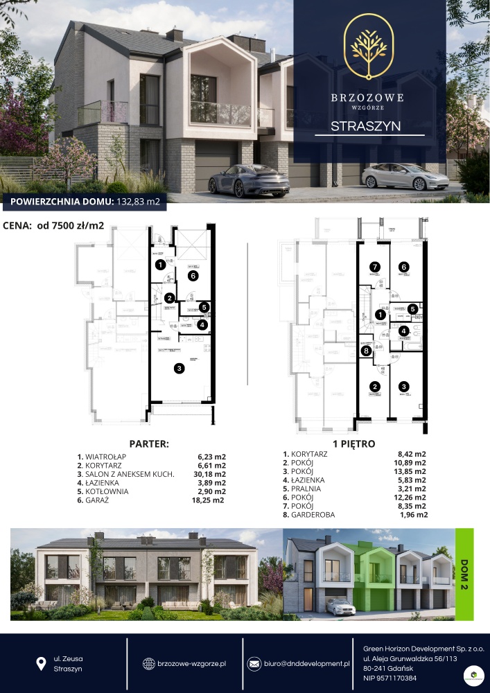 Dom 1B (środkowy) – 132,83 m² – 995 000 PLN – rezerwacja