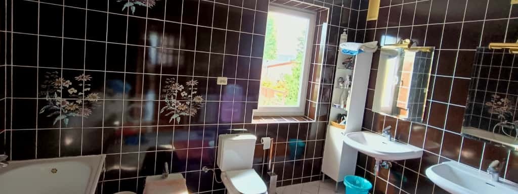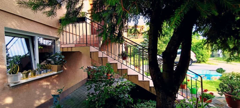 Na prostokątnej, ogrodzonej działce znajduje się dom idealny dla większej rodziny, a nawet z potencjałem na usługi lub dostosowanie pod hotel.