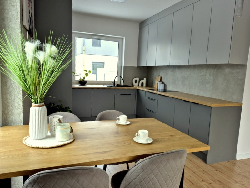 • Meble w kuchni, salonie i łazienkach – lakierowane, wykonane na wymiar