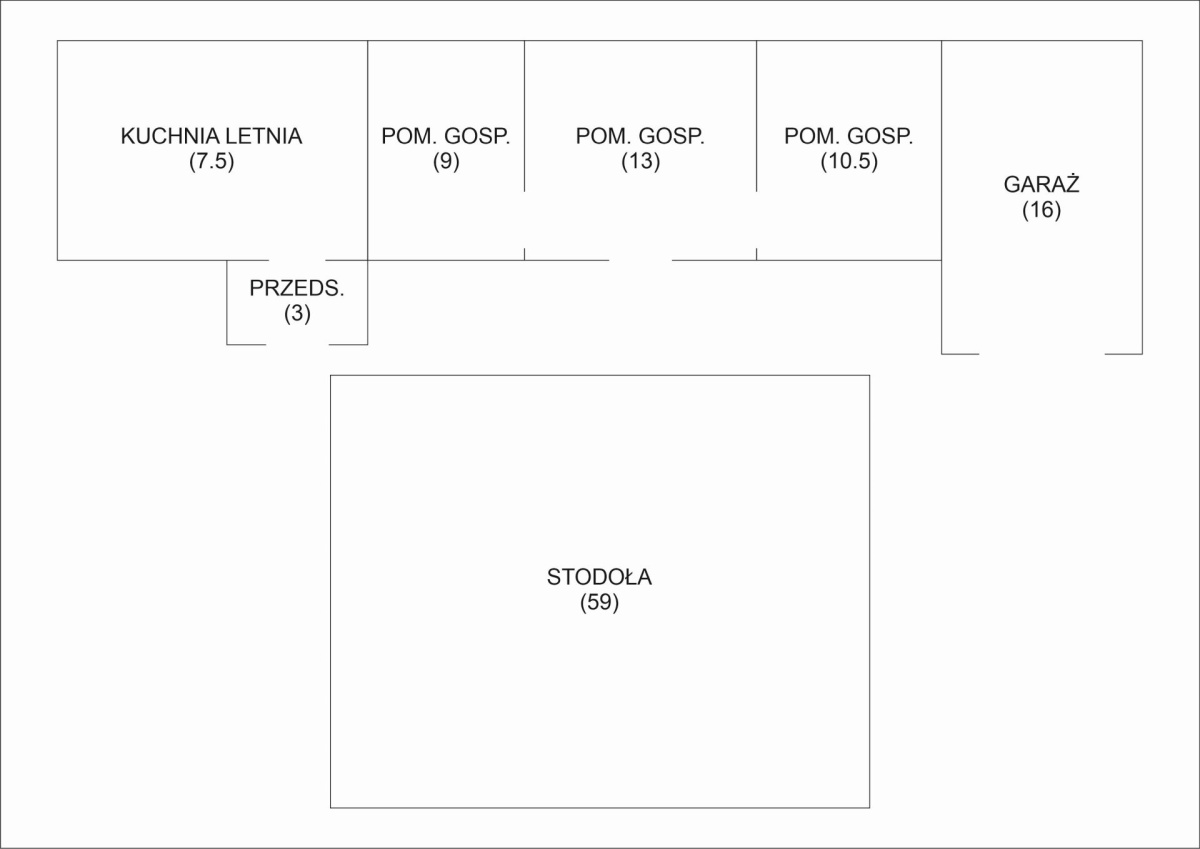 Budynki gospodarcze o powierzchni 128 m2.
