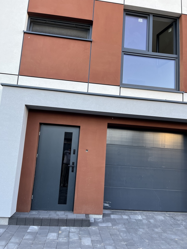 Przestrzeń i komfort: Każdy dom oferuje aż 5 przestronnych pokoi o wysokości do 2,9 m, 3 łazienki, WC, garaż w bryle budynku, kotłownię, pralnię, salon z aneksem kuchennym i ogródkiem oraz taras na II piętrze z widokiem na Warszawę.