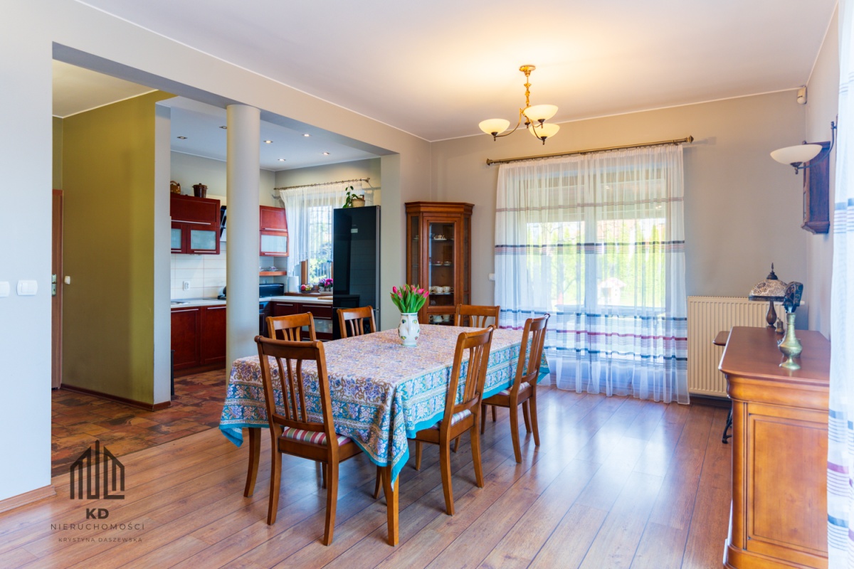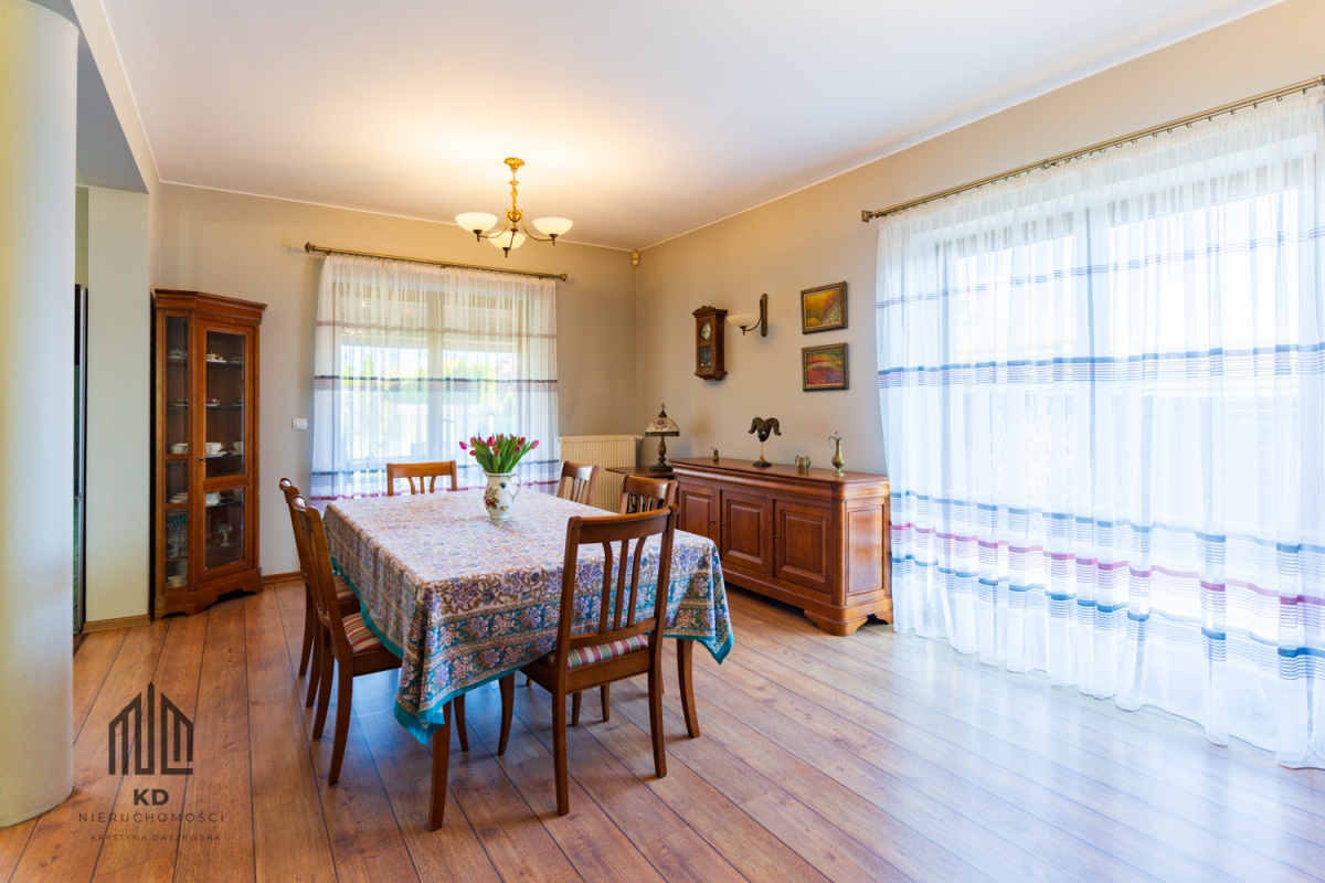 Dwie działki o łącznej powierzchni 1415 m² stanowią dodatkowy atut – nieruchomość doskonale sprawdzi się nie tylko jako komfortowy dom rodzinny, ale również jako siedziba firmy, kancelaria, biuro lub inwestycja.
