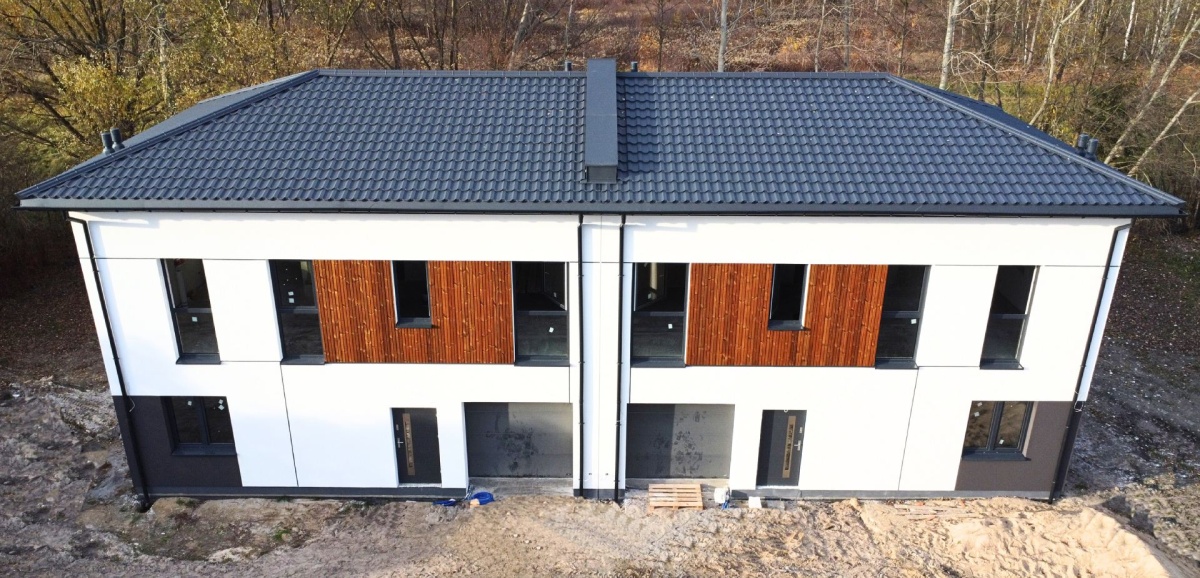Każdy dom ma 130 m² powierzchni użytkowej i położony jest na działce ok. 600 m².