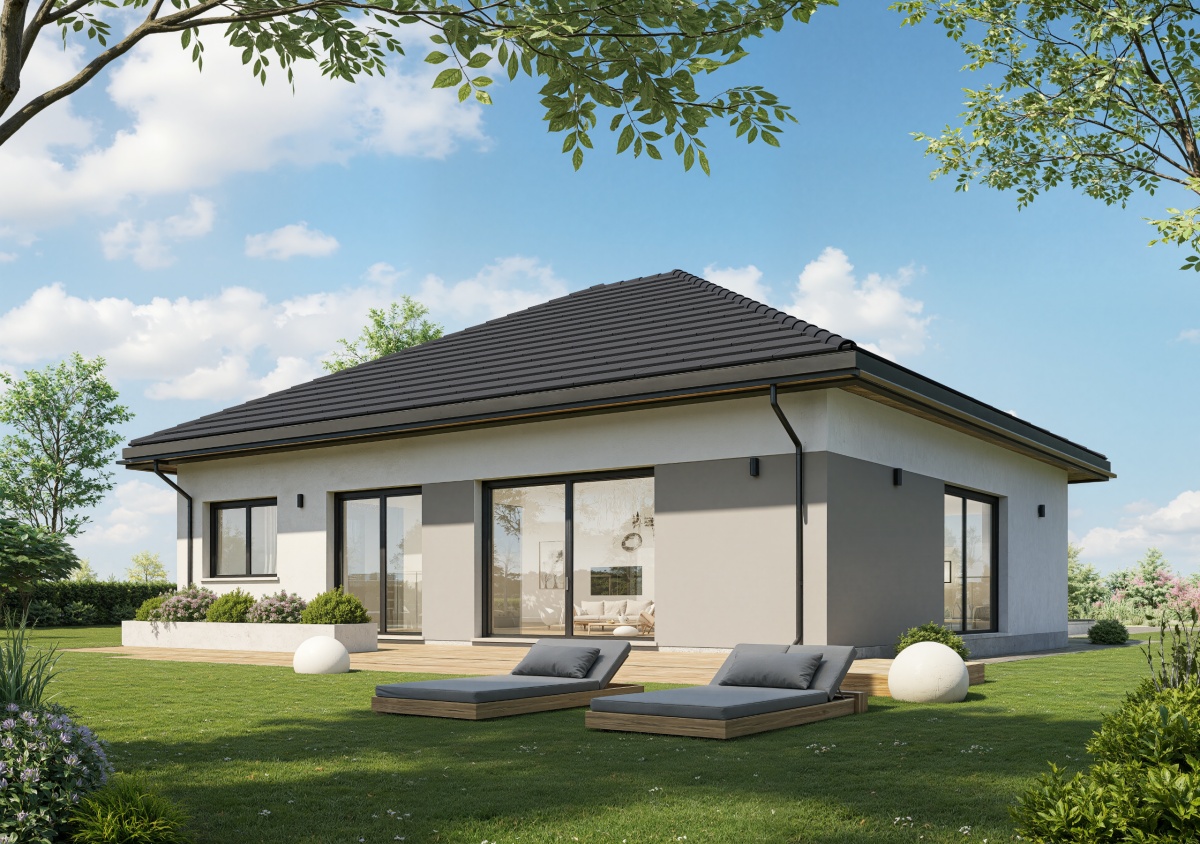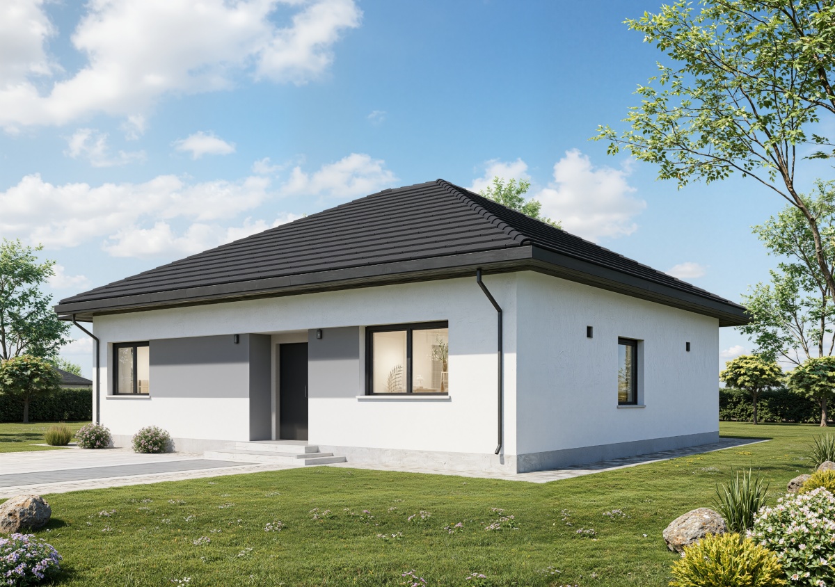 Nowoczesny parterowy dom 108,64 m² w stanie deweloperskim, na działce ponad 1000 m², w Bartoszówce przy ul. Pałacowej.