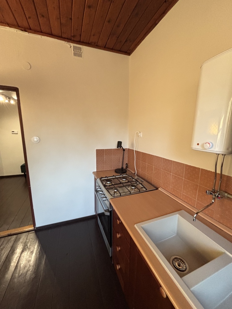Na parterze znajduje się przestronny salon, kuchnia oraz toaleta, a na piętrze dwie sypialnie oraz łazienka z wanna. Dom posiada ogród, mały garaż oraz miejsce postojowe. W okolicy pełna infrastruktura: sklepy, szkoły, tereny zielone.