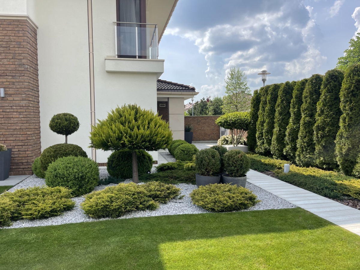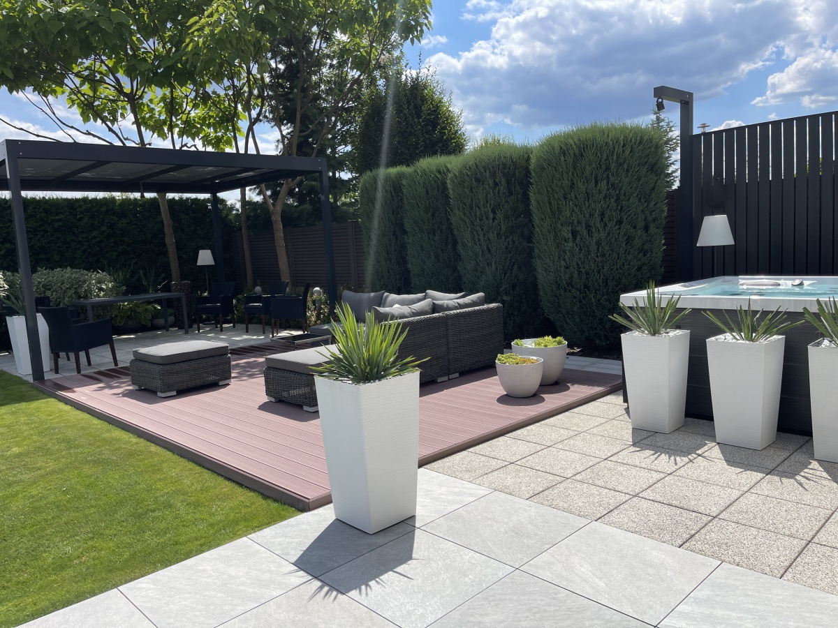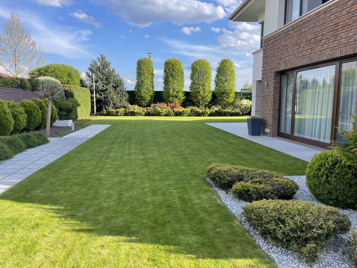 zadbany ogród z tarasem (strefa grillowa i śniadaniowa)