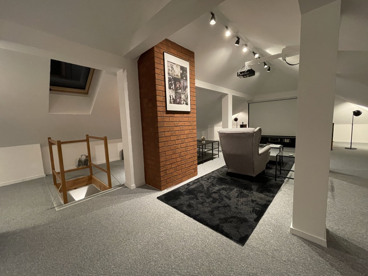 Sala kinowa z profesjonalnym projektorem i nagłośnieniem