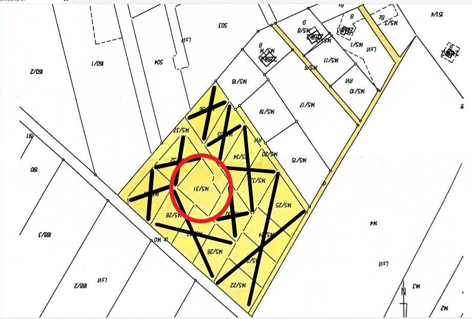 Przedmiotem sprzedaży jest TYLKO działka zaznaczona w kółko na czerwono.