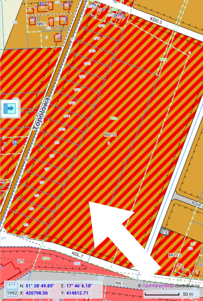 - KDL.7 - tereny drogi klasy lokalnej (około 860m2).