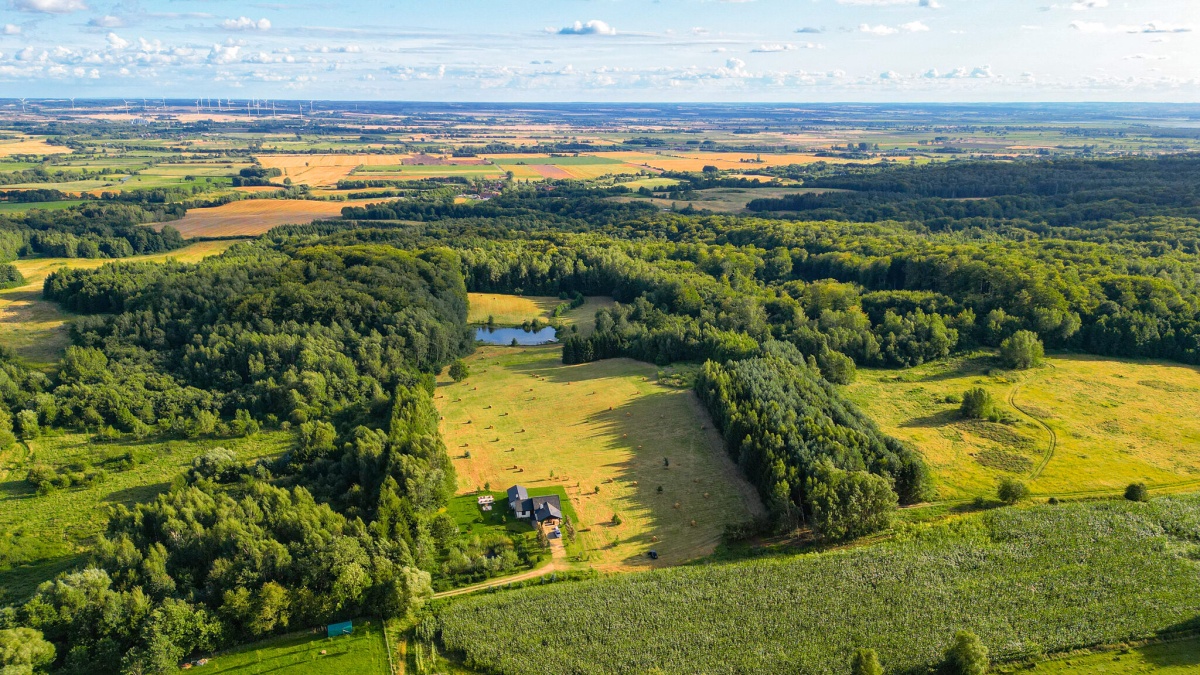 6 działek leśno-rolnych o pow ponad 2,7 ha z możliwością zabudowy mieszkalnej jednorodzinnej, z własnym, prywatnym lasem oraz z przepięknym, zarybionym stawem – całość za 599 000 zł!