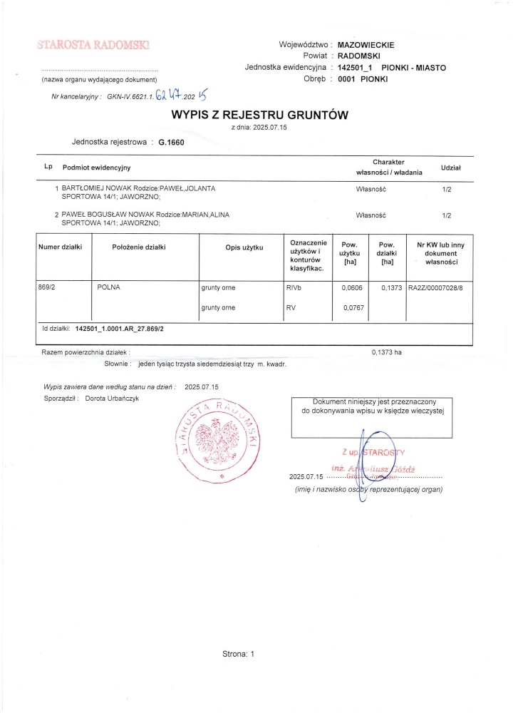 Identyfikator działki do znalezienia na Geoportalu: 142501_1.0001.AR_27.869/2