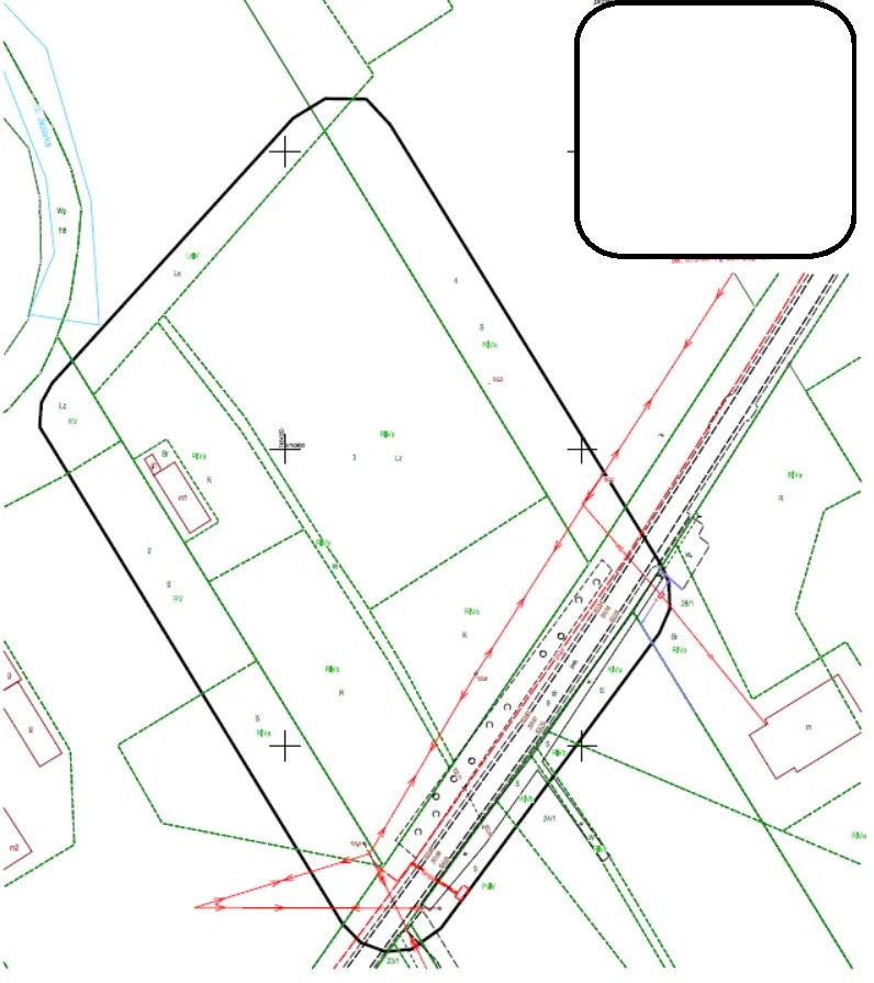 Powierzchnia 9000 mkw z czego 5400 mkw to obszar zabudowy pozostałe 3600 mkw użytek leśny. Wymiary ok. 60 m. na 150 m. Na działce znajduje star, niewielka zagroda z malutkim budynkiem mieszkalnym.