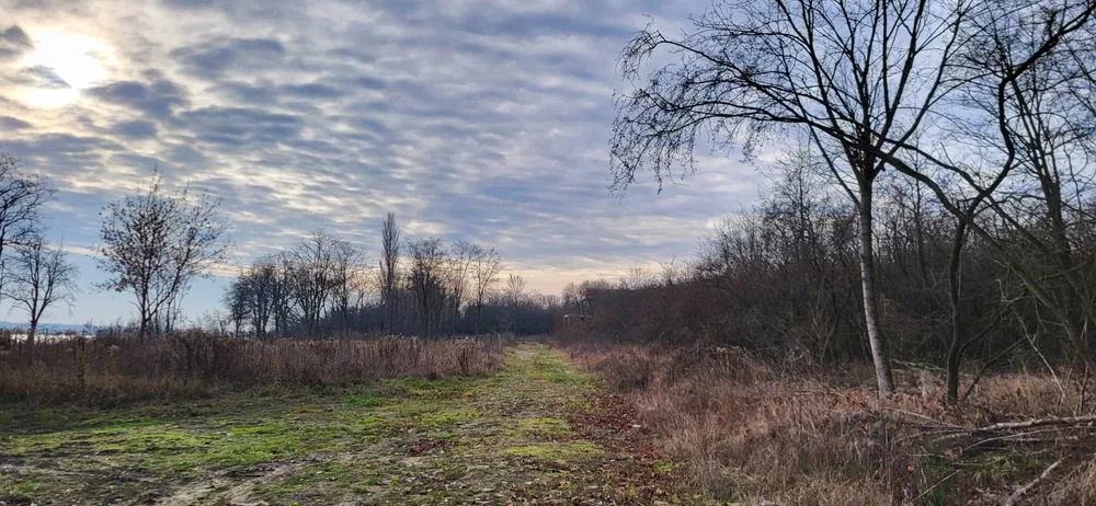 Regularny prostokąt dłuższy bok około 54 m . Teren na skarpie z doskonały widokiem na Zalew Zegrzyński do którego w prostej linii jest około 140 m .