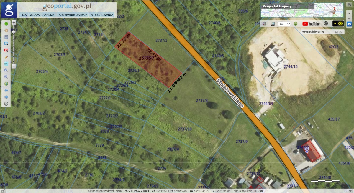 Sprzedam działkę budowlaną nr 2737/2 położoną w Górach Luszowskich (Luszowice), powiecie chrzanowskim. Działka położona jest w cichej, spokojnej okolicy na terenach zielonych. Działka ma kształt prostokąta o wymiarach ~ 22x71m. Powierzchnia działki wynosi 1569 m2. Dla działki zostały wydane w lipcu 2025 r. warunki zabudowy na budowę budynku mieszkalnego jednorodzinnego z garażem do dwóch stanowisk wraz z infrastrukturą techniczną oraz urządzeniami budowlanymi do obsługi budynku. Ponadto wydane warunki na przyłączenie i dostawę energii elektrycznej oraz warunki przyłączenia do sieci wodociągowej (~100 m). Dojazd do działki odbywa się drogą powiatową - ul. Stojałowskiego oraz służebnością drogową przejazdu, przechodu i przeprowadzenia mediów po działce gruntu 2737/1. Wydana decyzja o wyrażeniu zgody na lokalizację zjazdu z drogi powiatowej. Autostrada A4 (wyjazd/zjazd kierunek Katowice-Kraków) oraz centrum Chrzanowa znajdują się w odległości ~ 3 km od działki. Cena do niewielkiej negocjacji. Osoby zainteresowane proszę o kontakt telefoniczny po godz. 16.