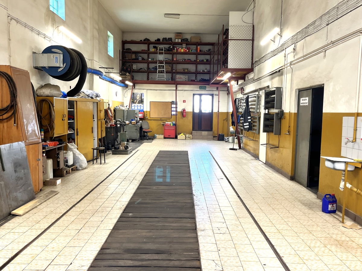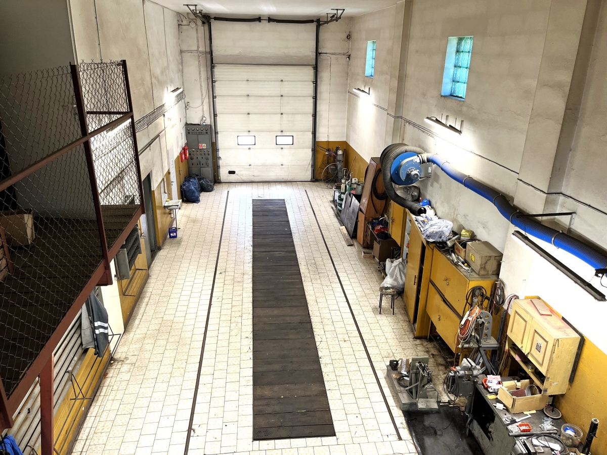 Wysoka hala warsztatowa. Kanał, instalacja odprowadzania spalin.