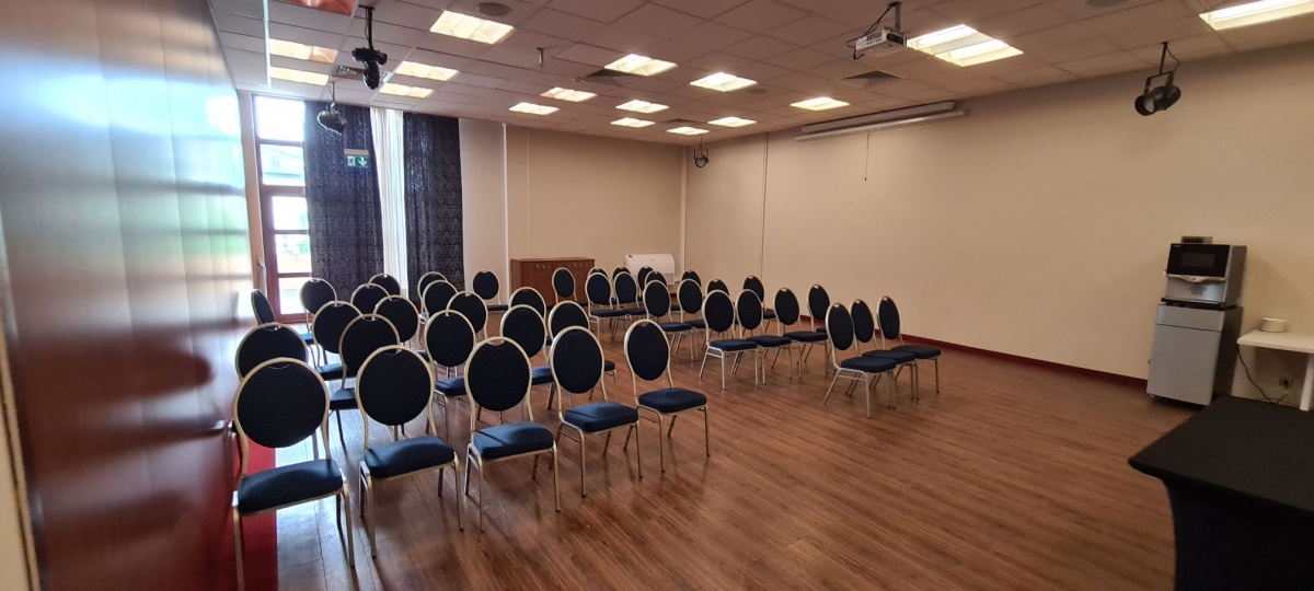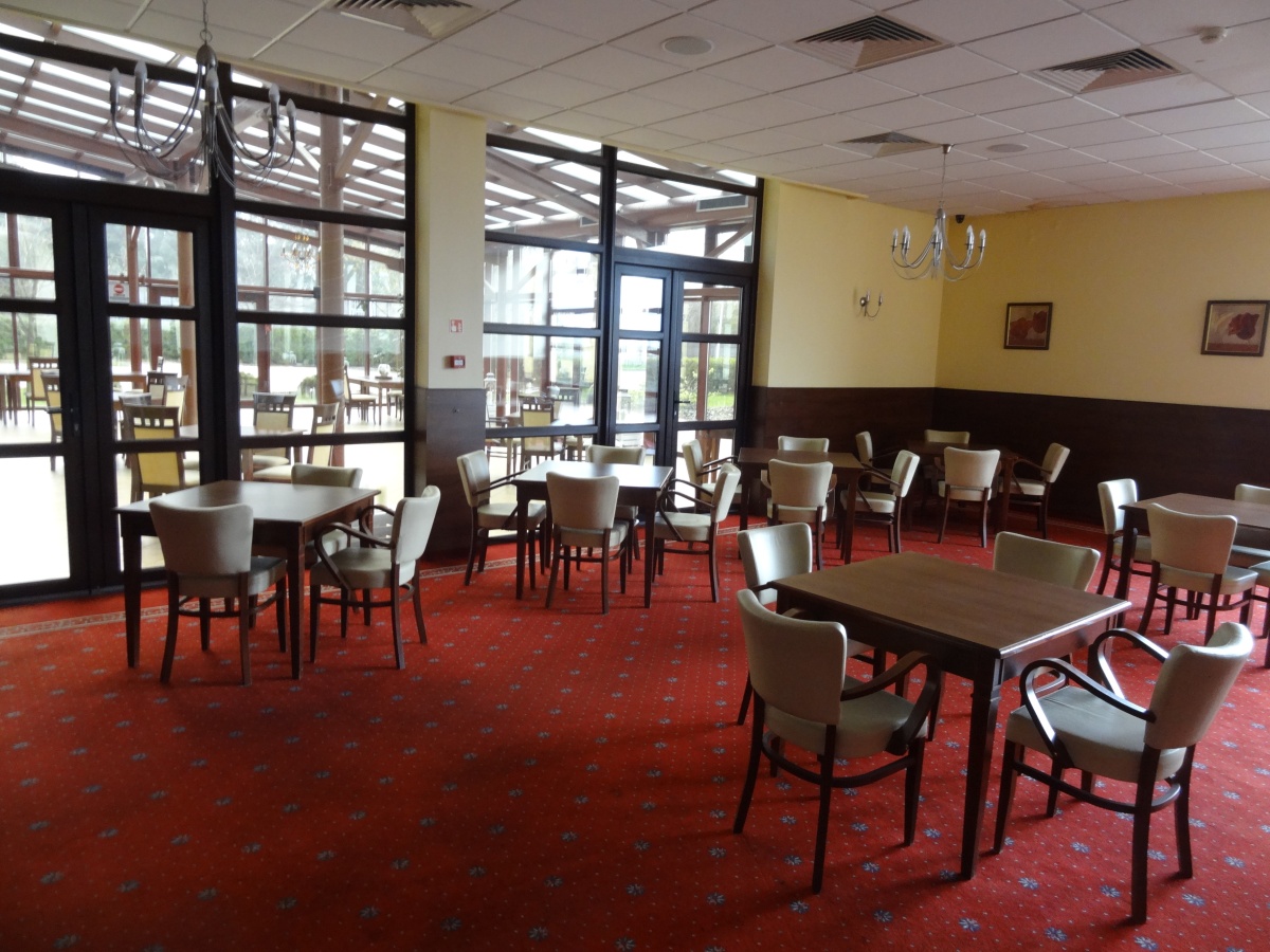 Na parterze usytuowano recepcję, restaurację dla 50 osób, Ogród Zimowy dla 100 osób, salę restauracyjną dla 80 osób oraz Lounge Bar dla 40 osób. Hotel wyposażony jest także w 4 sale konferencyjne.