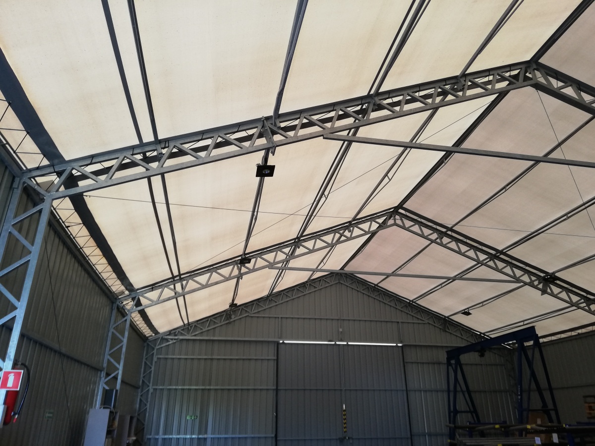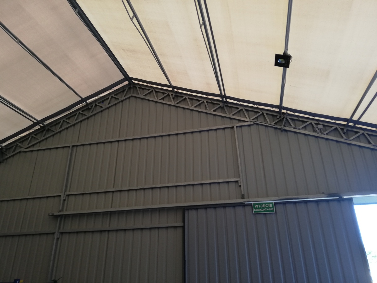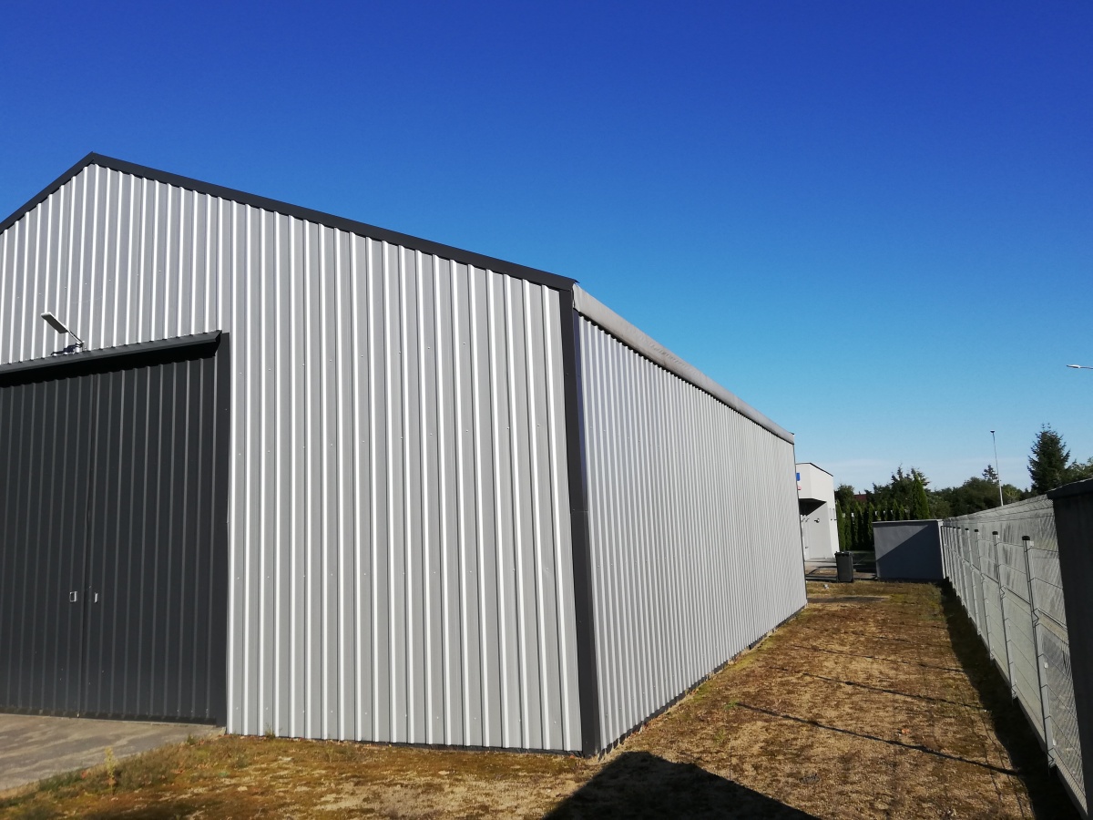 - hala magazynowa o pow. 180 m2 o konstrukcji stalowej pokryta opończą 650g/m2. Rok. bud. 2019.