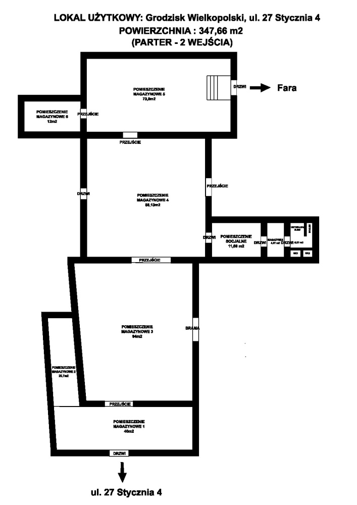 Oferuję lokal na wynajem o powierzchni 347 m² (nie wliczając garażu - garaż ok. 90m2). Istnieje możliwość wynajmu części lokalu - od strony Fary znajduje się dodatkowe, osobne wejście).