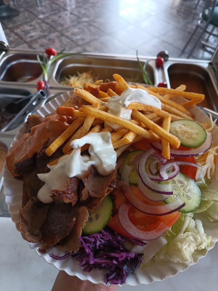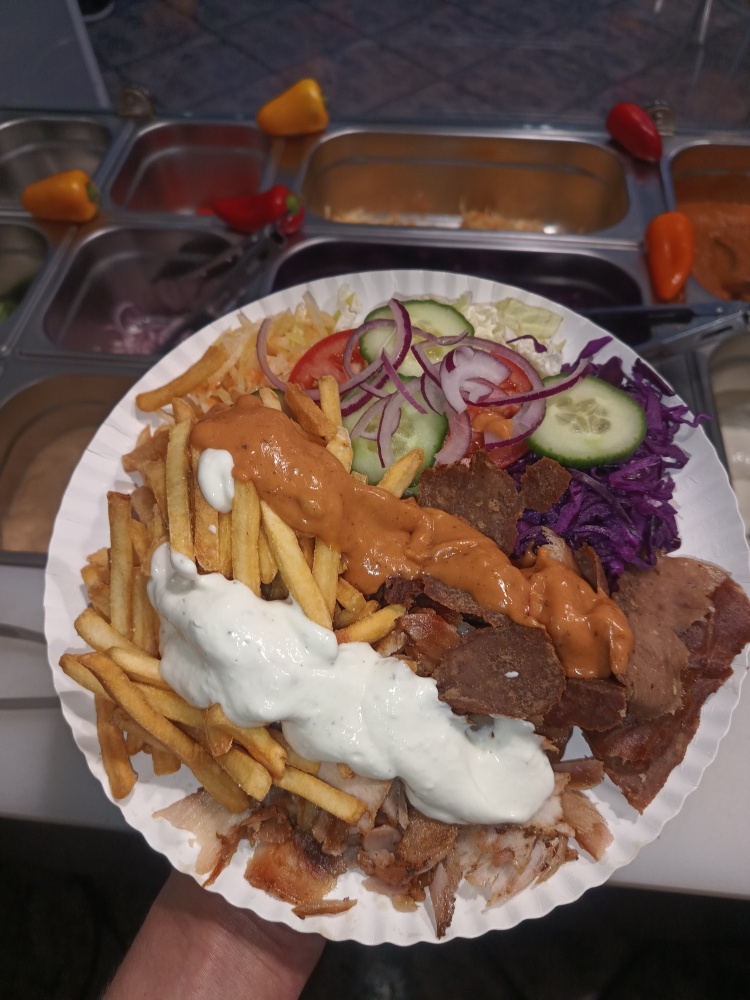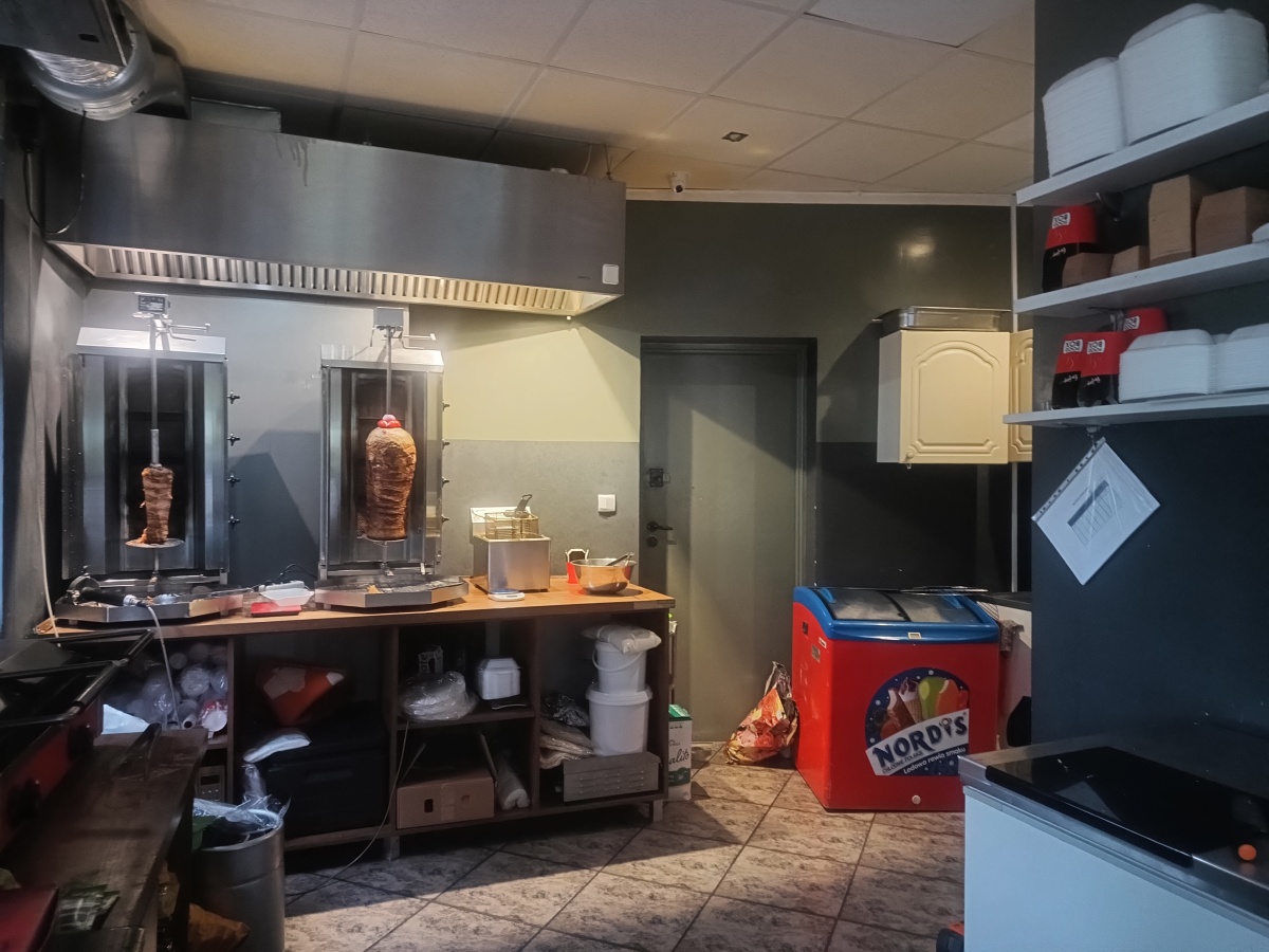 - kuchnia wyposażona w meble, 2x zamrażarka, 1x lodówka, 2x opiekacz gazowy do kebaba, 2x frytkownica, opiekacz do bułek, płyta grillowa, mikrofalówka, piecyk do zapiekanek, 2x nóż elektryczny do kebaba i cały niezbędny drobny sprzęt + zapasy opakowań i towaru;